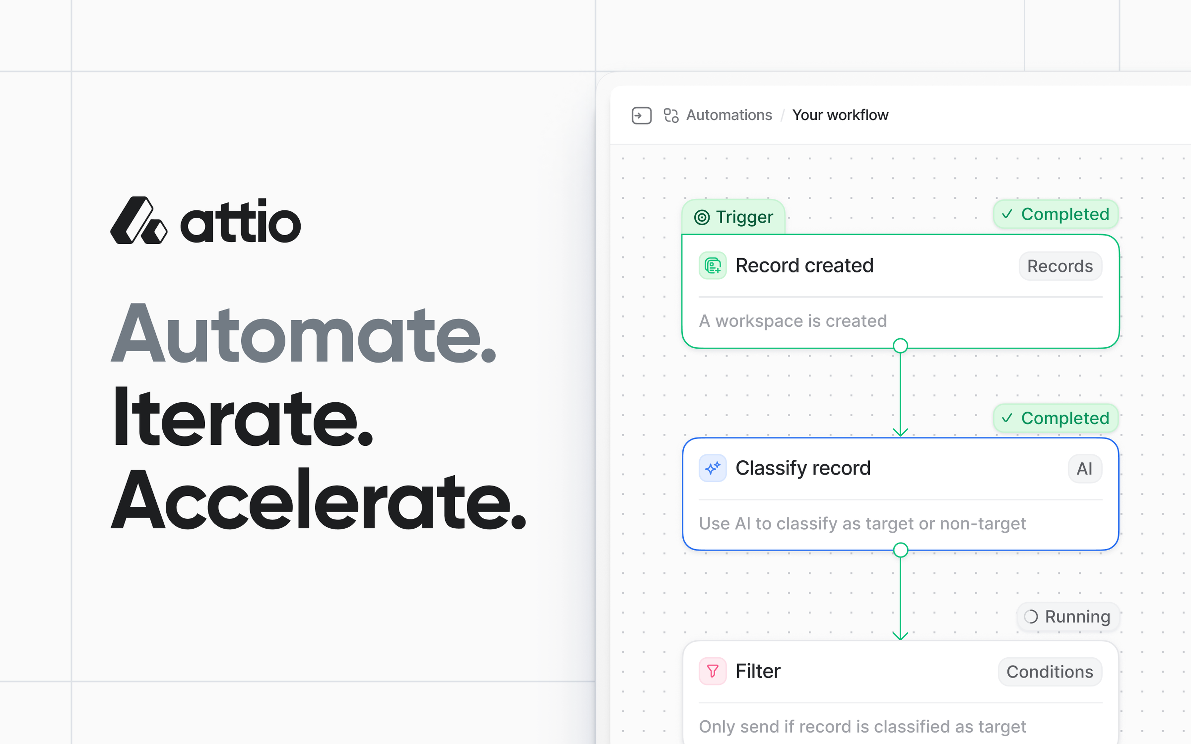 After seven months of non-stop building, we’re excited to announce Automations, our powerful new feature that allows you to build and automate any process right inside of Attio.