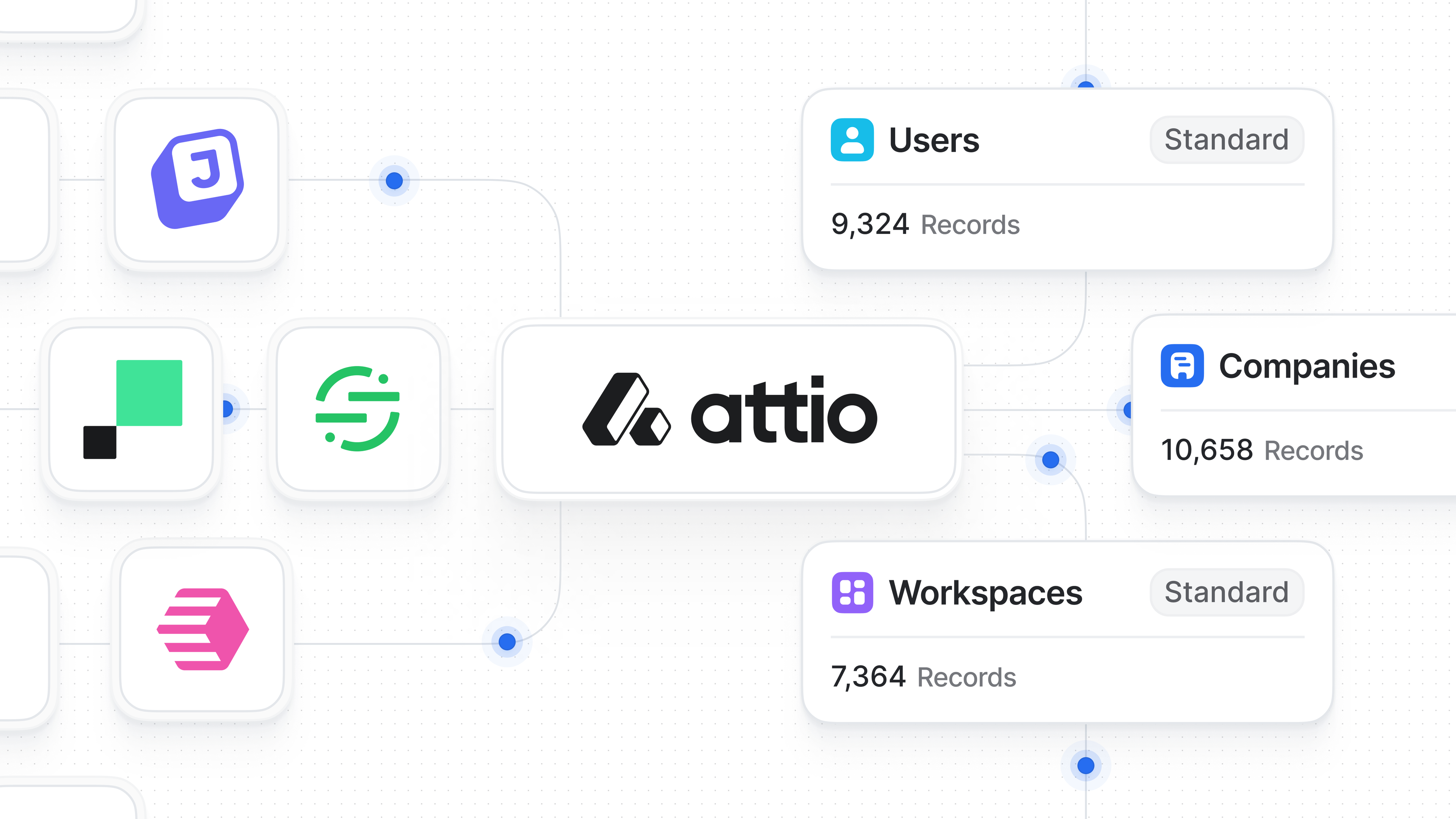 Scalability: As your business grows and evolves, Attio grows with you. Our data model can ingest and process millions of data points with virtually zero lag time.