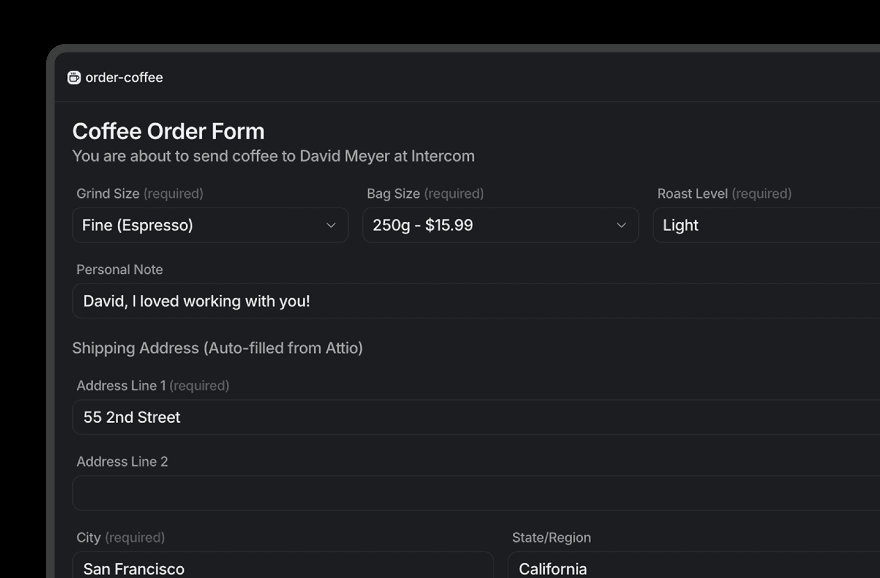 A well-designed, unique app that lets you send specialty coffee to contacts from inside Attio, showing how you can embed a gifting motion directly in your CRM.