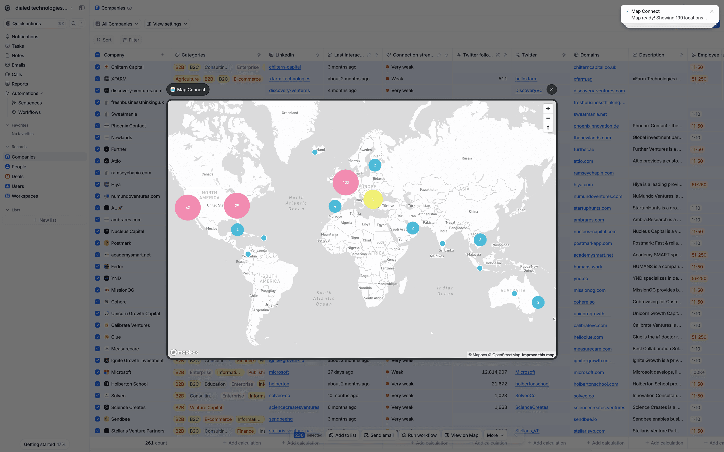 Plot people, companies, and deals on a map