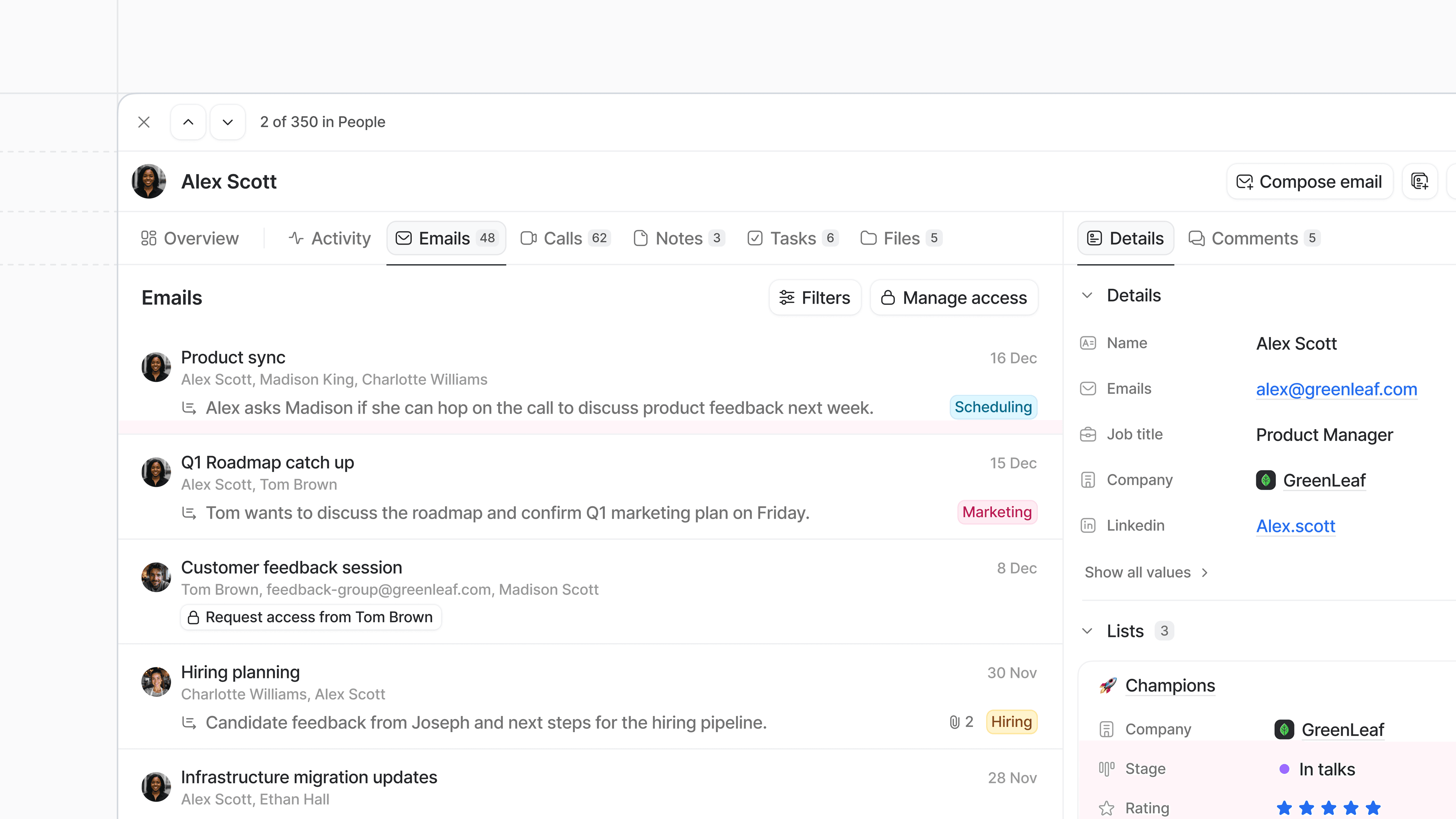 Whether it’s an invoice, hiring update, or meeting request, everything is classified—keeping your high-signal conversations front and center.