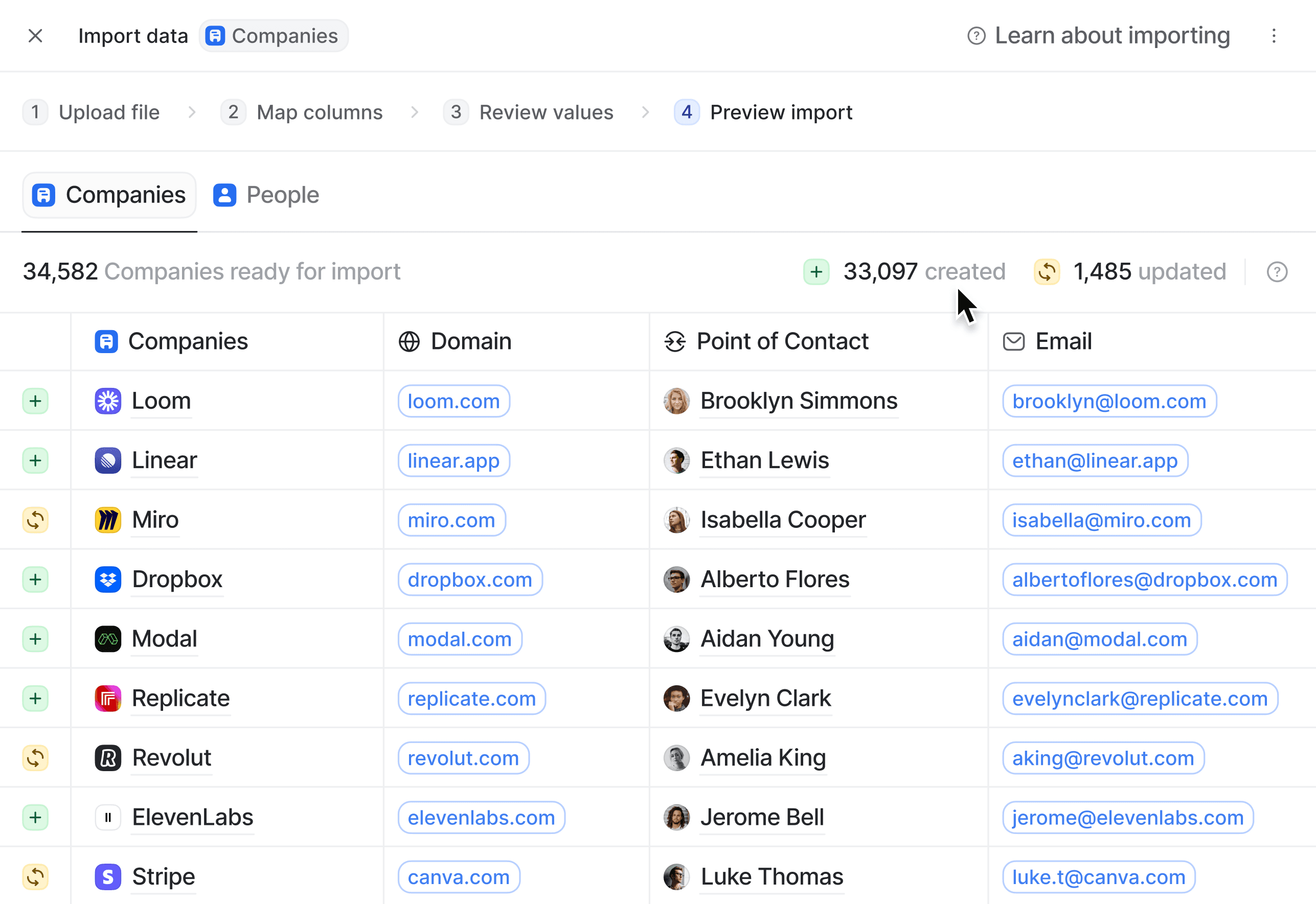 We also now display the number of records being Created or Updated in the preview page, giving you further clarity on how each import will affect your CRM.