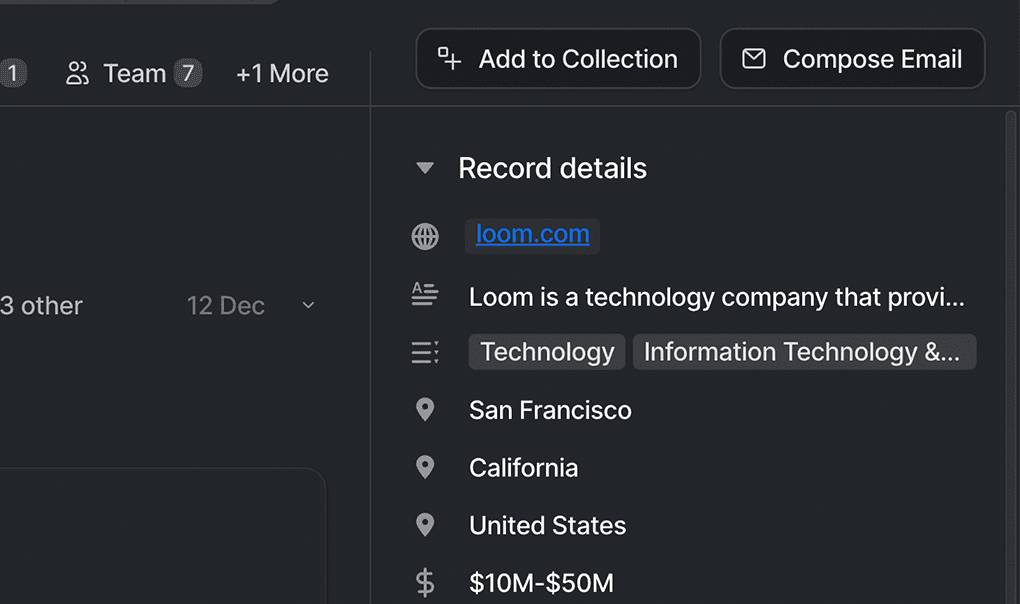We’ve just added even more functionality to record pages. Check out the new Add to Collection and Compose Email buttons on record profile pages.