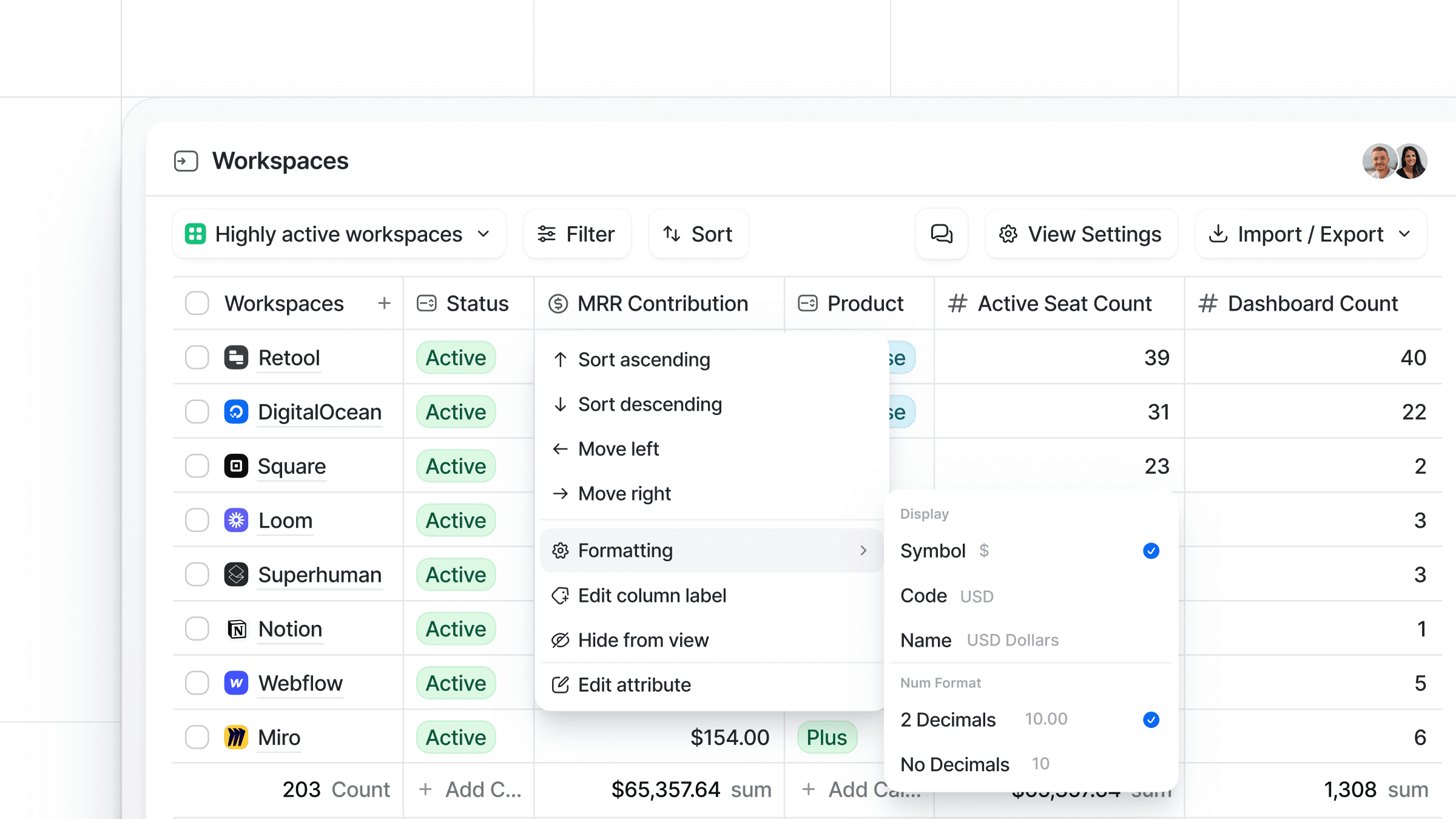 You can now specify the formatting for currency cells in a table view, so you can display your currency values whichever way is right for the context.