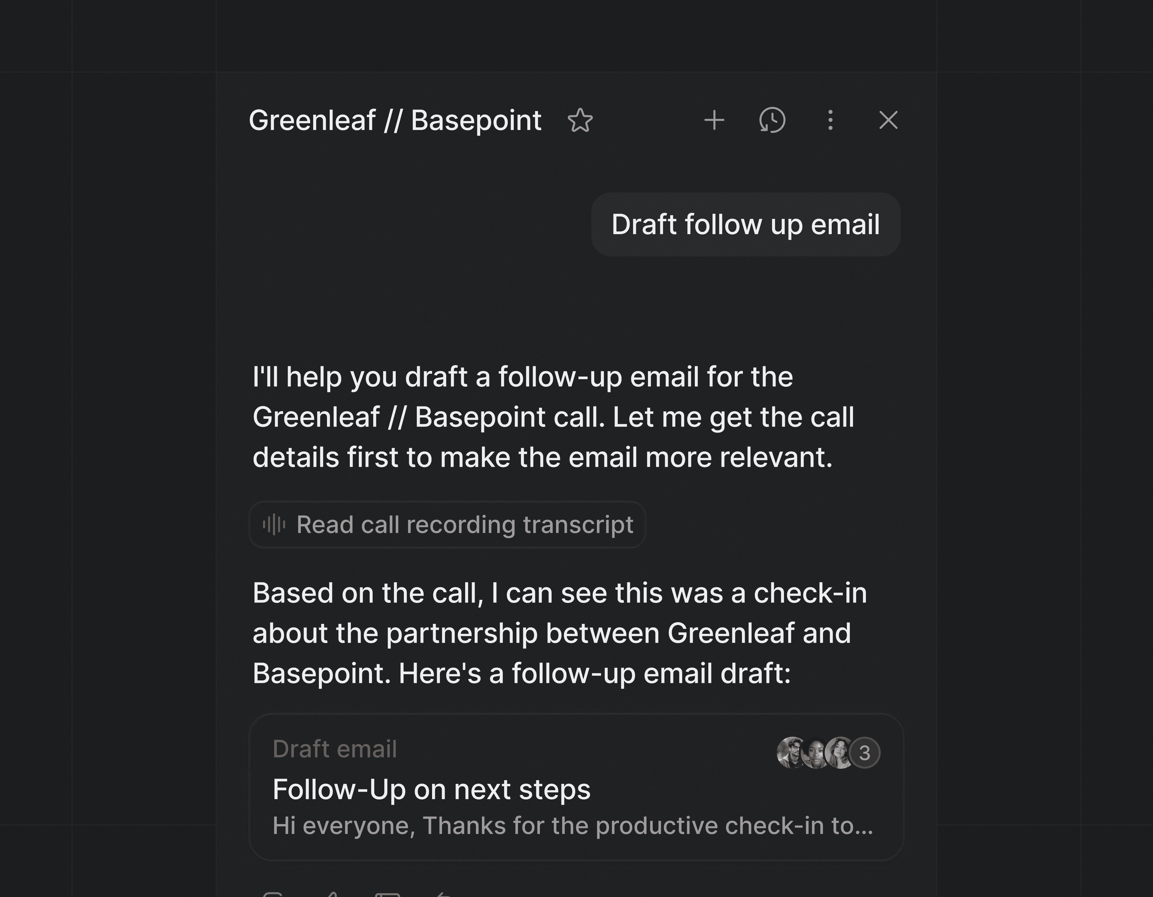 Building this required more than integrating an LLM. We spent time designing the underlying architecture that makes an assistant thrive in your CRM: non-linear conversations, dynamic capabilities, automatic context inference, and streaming output that can render structured, interactive UI.