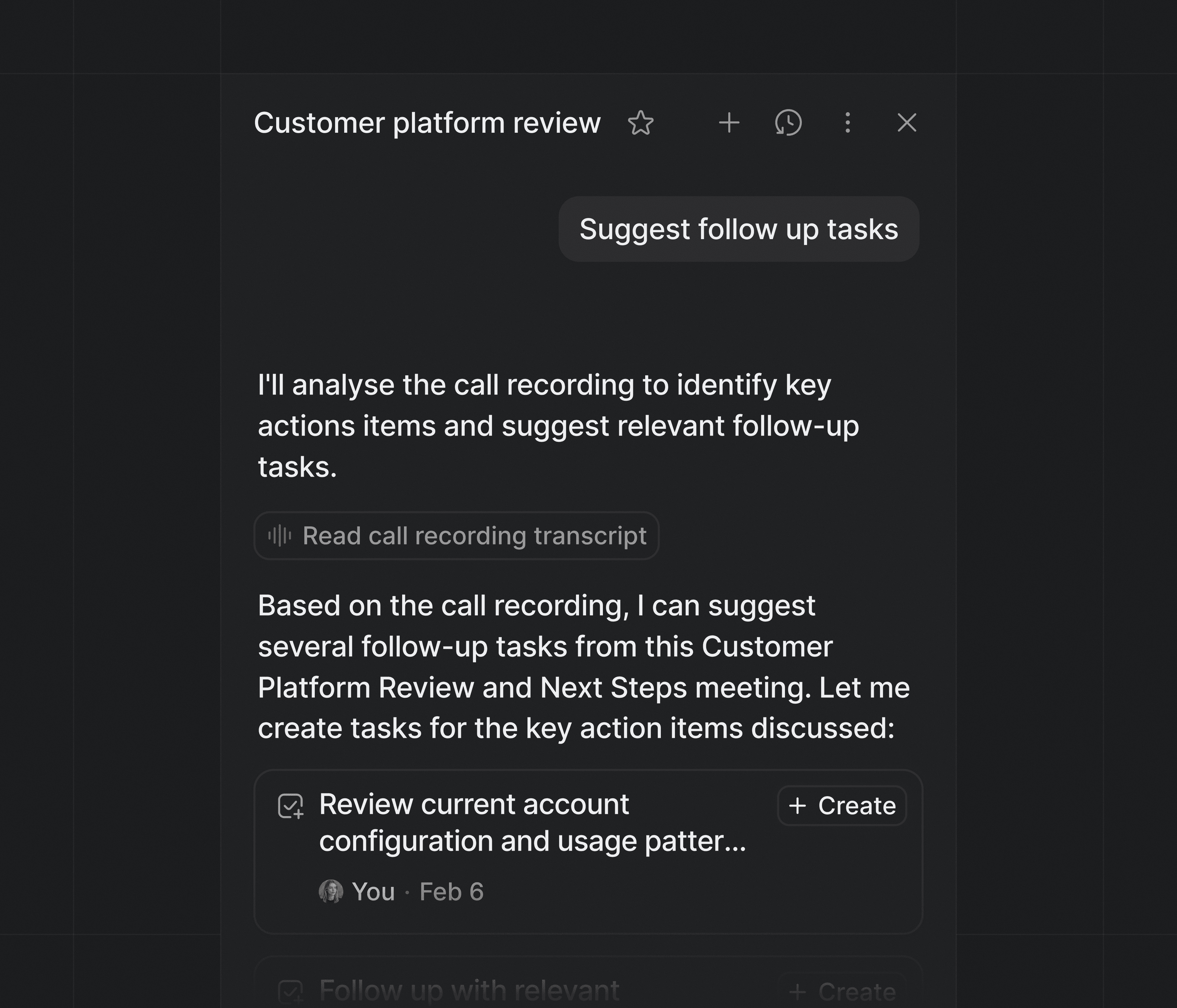 On the backend, that interest is hydrated into rich, structured context: associated records, participants, timestamps, transcript metadata, and more. This data is then serialized and injected directly alongside the user’s message.