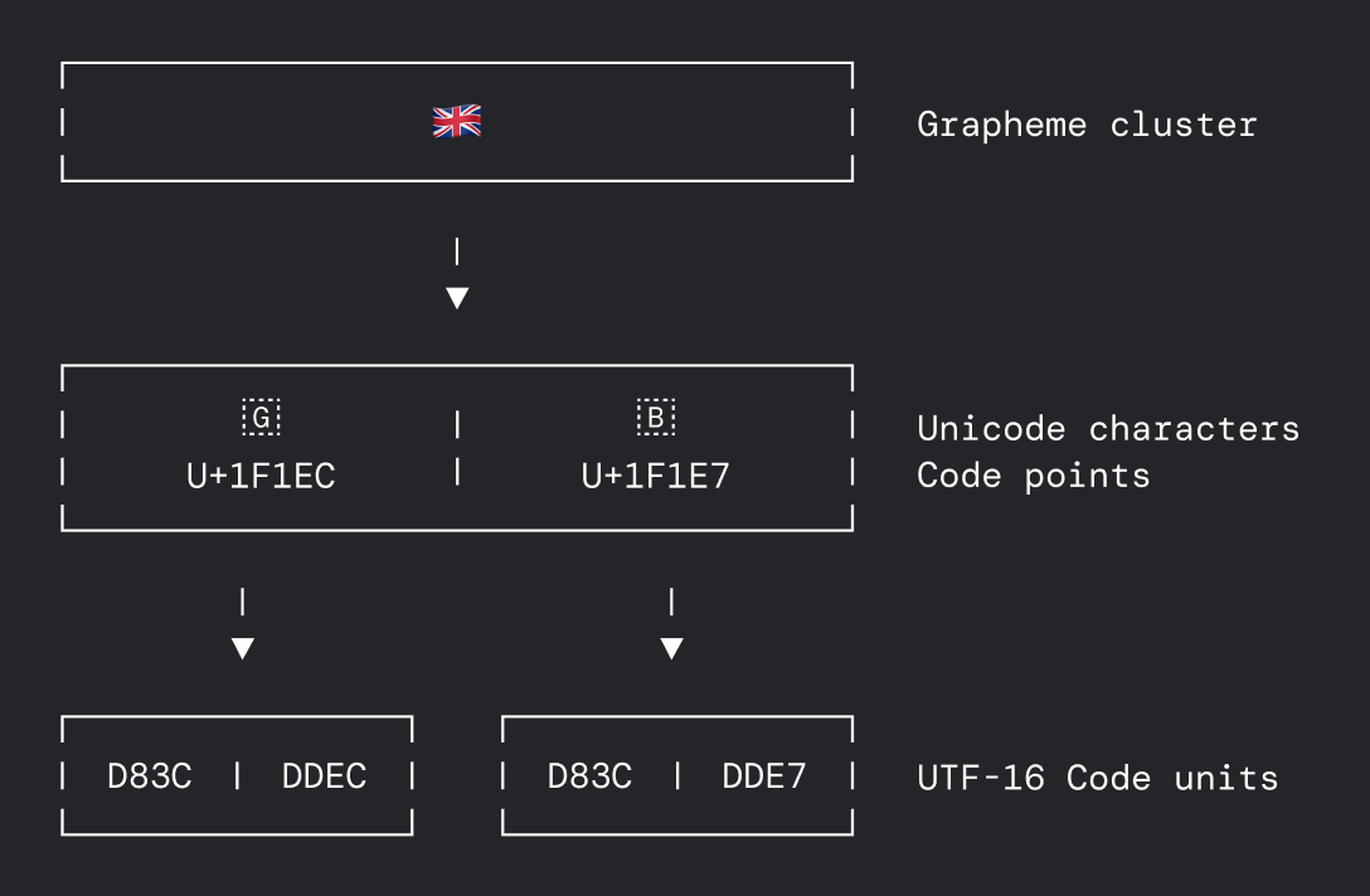 * The 🇬🇧 character is made up of two codepoints, 🇬 and 🇧.