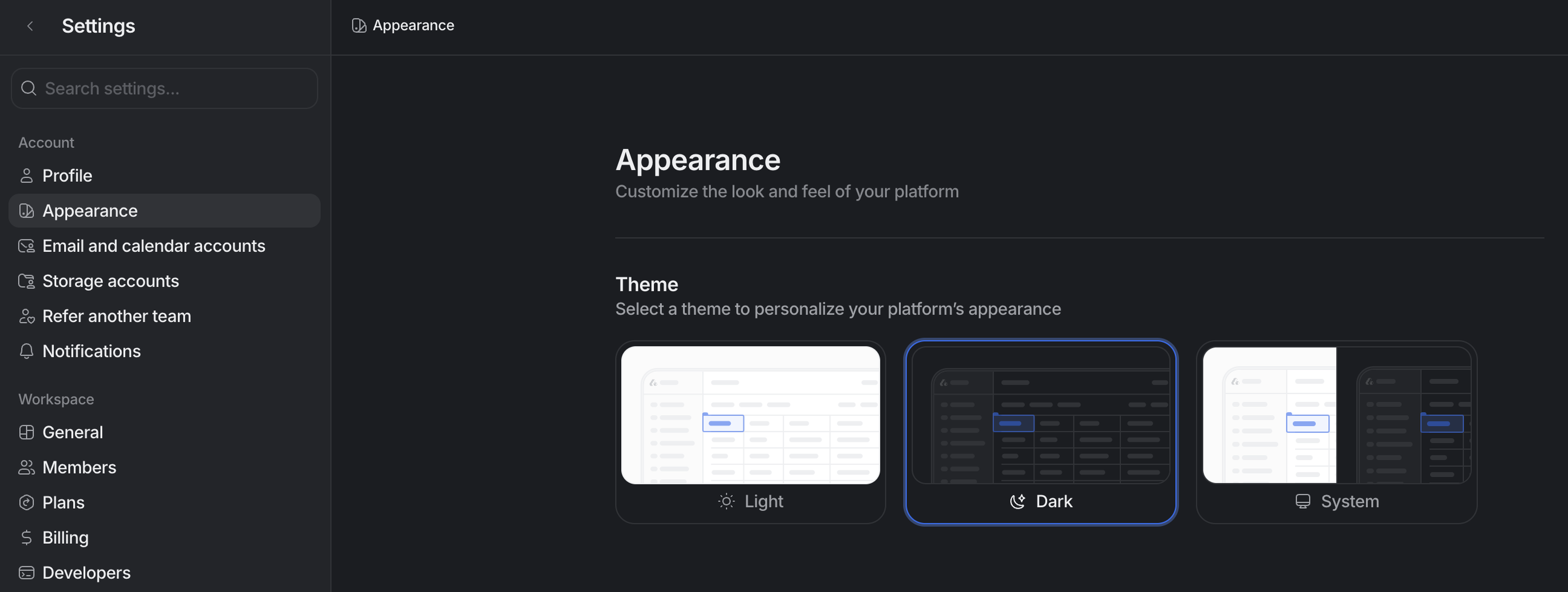 Choose your preferred theme: Light, Dark, or System (which follows your device settings).