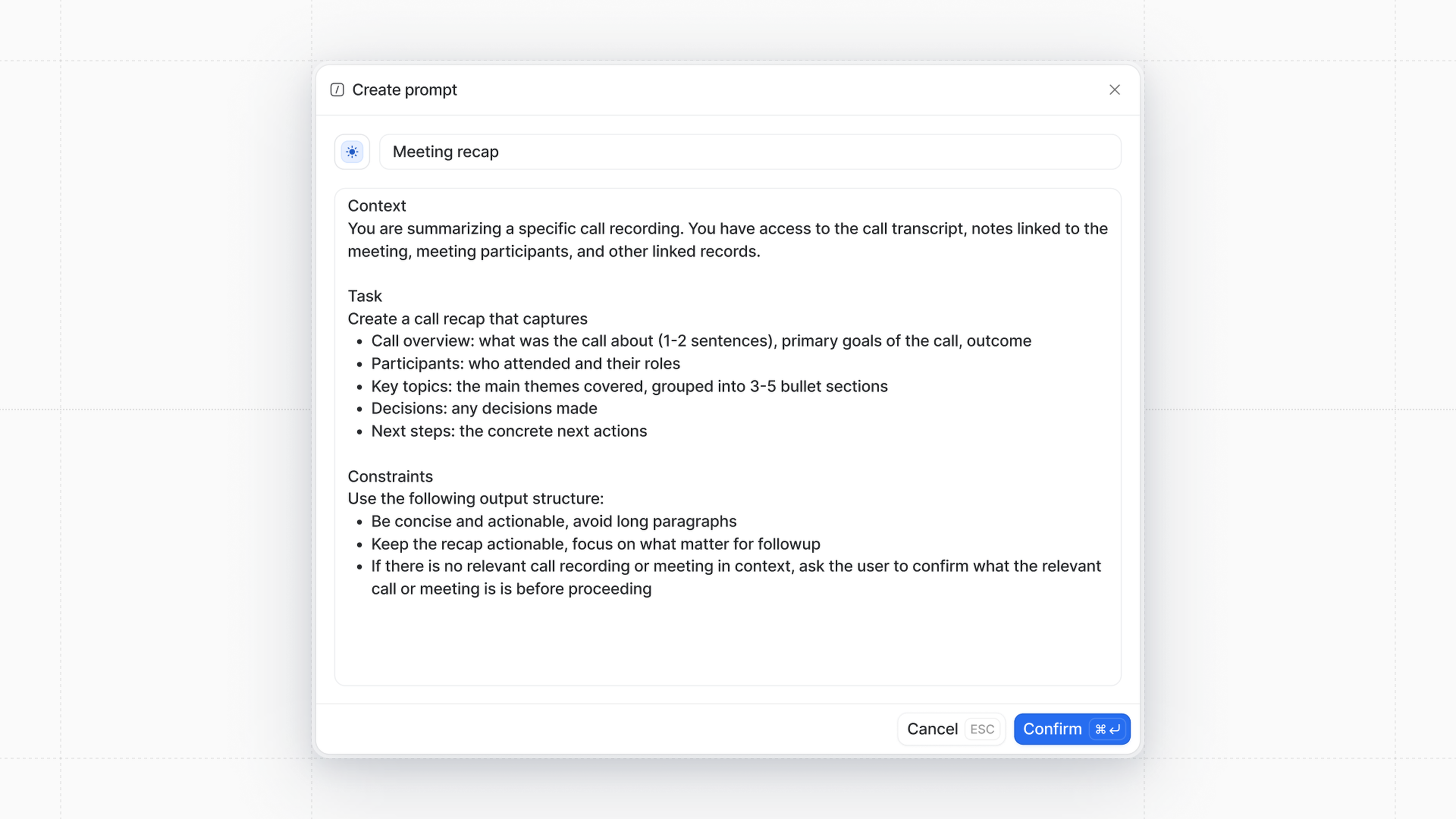 Keep the recap actionable, focus on what matters for follow-up