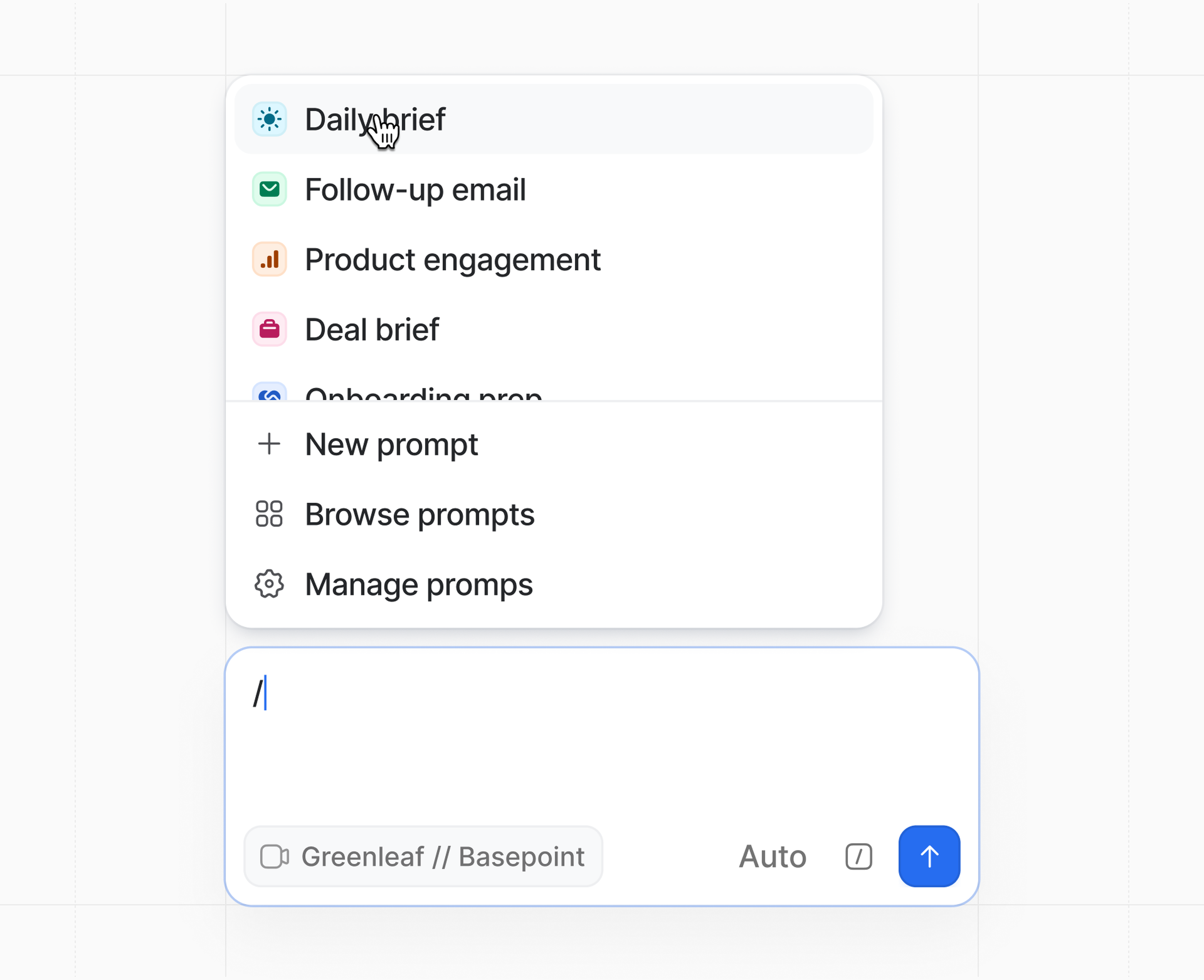 Note: Click the name of a prompt you’ve added to the composer for a preview. You can add more than one prompt to a message.