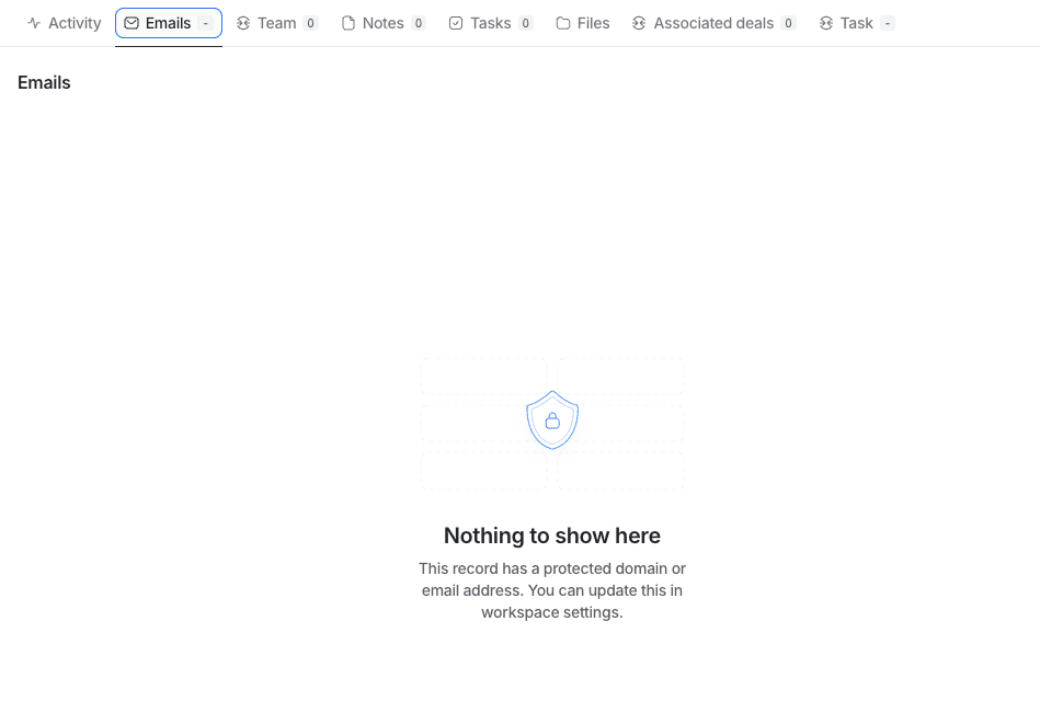 On the Enterprise plan, admins can use protected recipients to fully hide emails and calendar events on specific record pages. This applies to all workspace members.