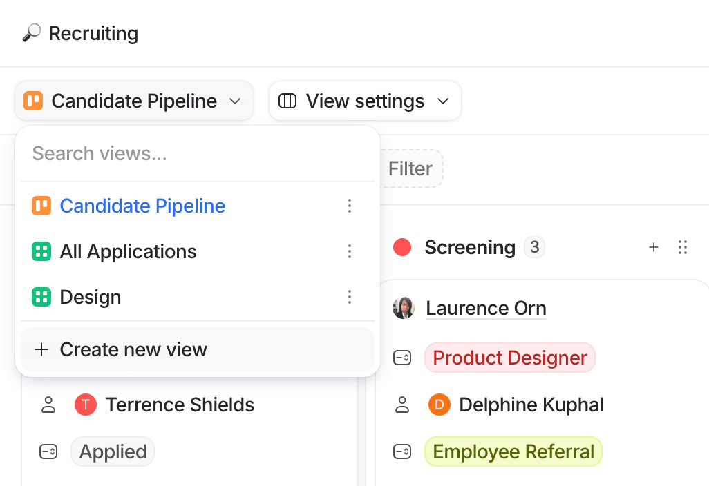 Kanban views let you track records through the stages of a workflow or process. Records appear as cards in your kanban view, and you can move them through your pipeline with drag-and-drop. Learn more about configuring and customizing your kanban view.