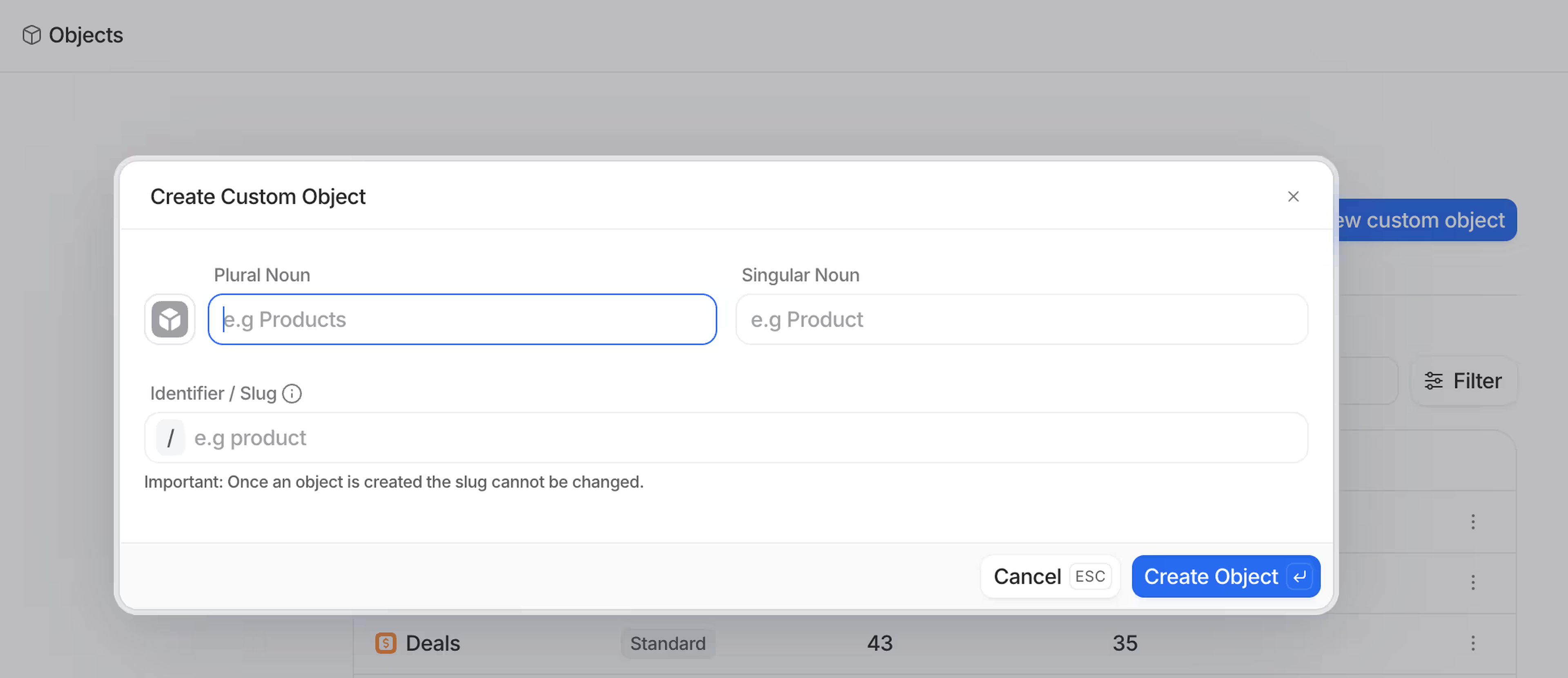 Note: Custom objects are only available on Pro and Enterprise plans. Learn more about plans and pricing.