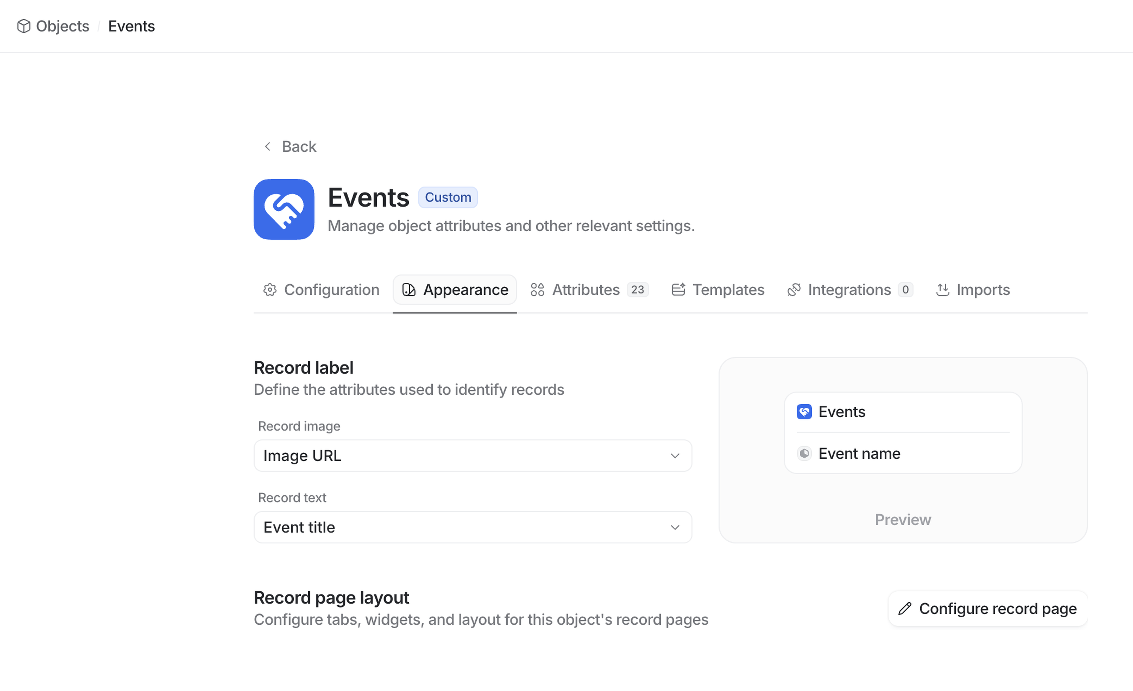 You can also customize which attributes are shown when creating a new record for your custom object by creating a record template (available on Pro and Enterprise plans).