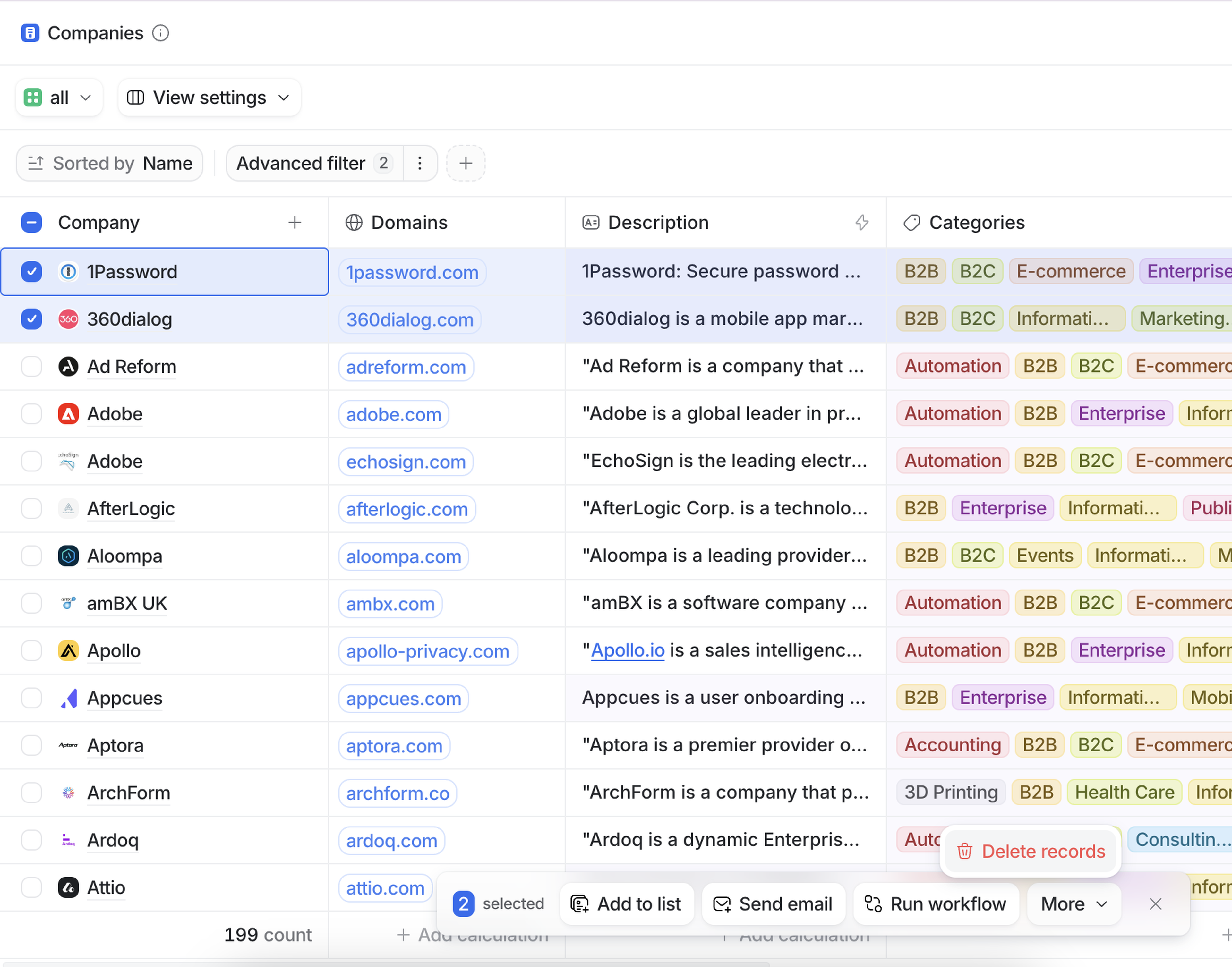 Navigate to the All records page, such as Companies or People from the main sidebar.