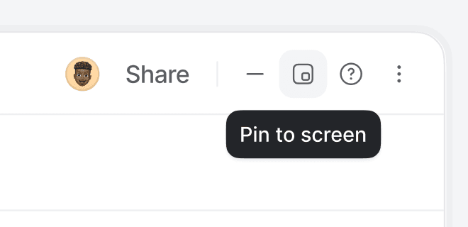 Pin to screen in the top right corner of the page keeps the video, transcript, and insights visible on the right-hand side of your screen while navigating to other pages in Attio
