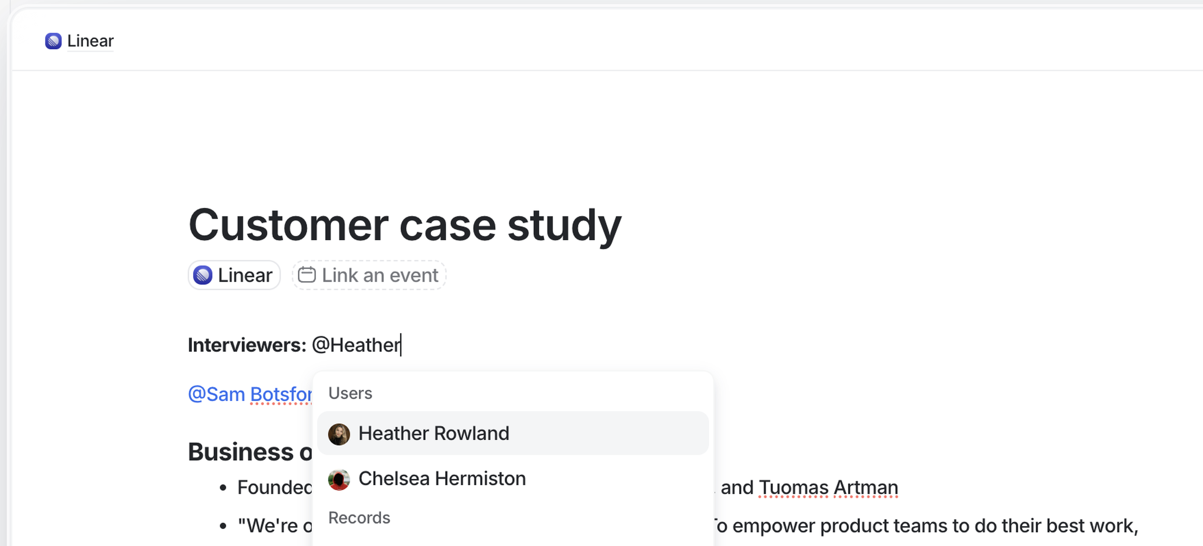 You can @mention teammates to pull their attention to the right place, assigning tasks and starting conversations. You can @mention members of your team in notes, tasks, and comments, and they'll receive a notification in the sidebar. Hit the @ key and start typing their name to get started.