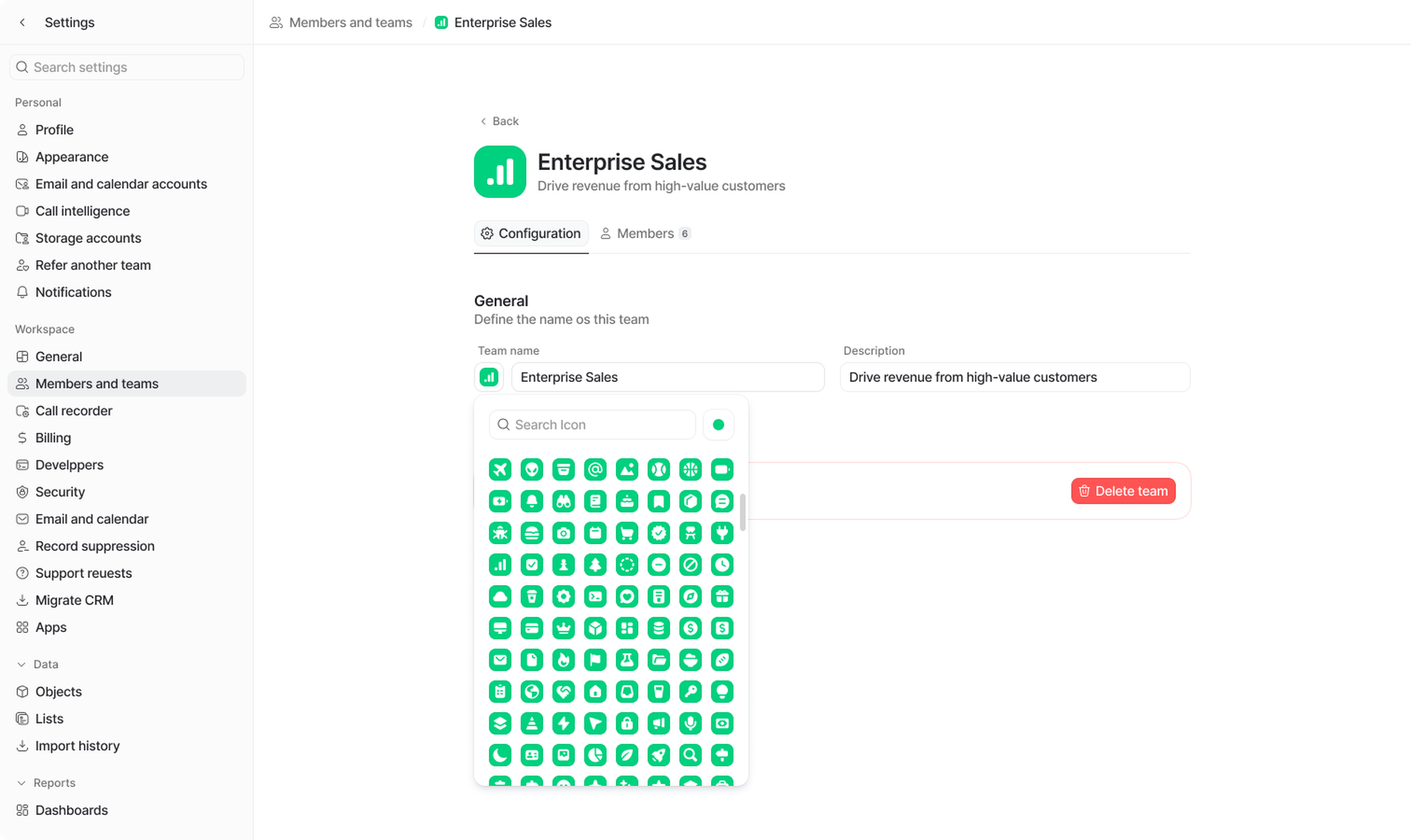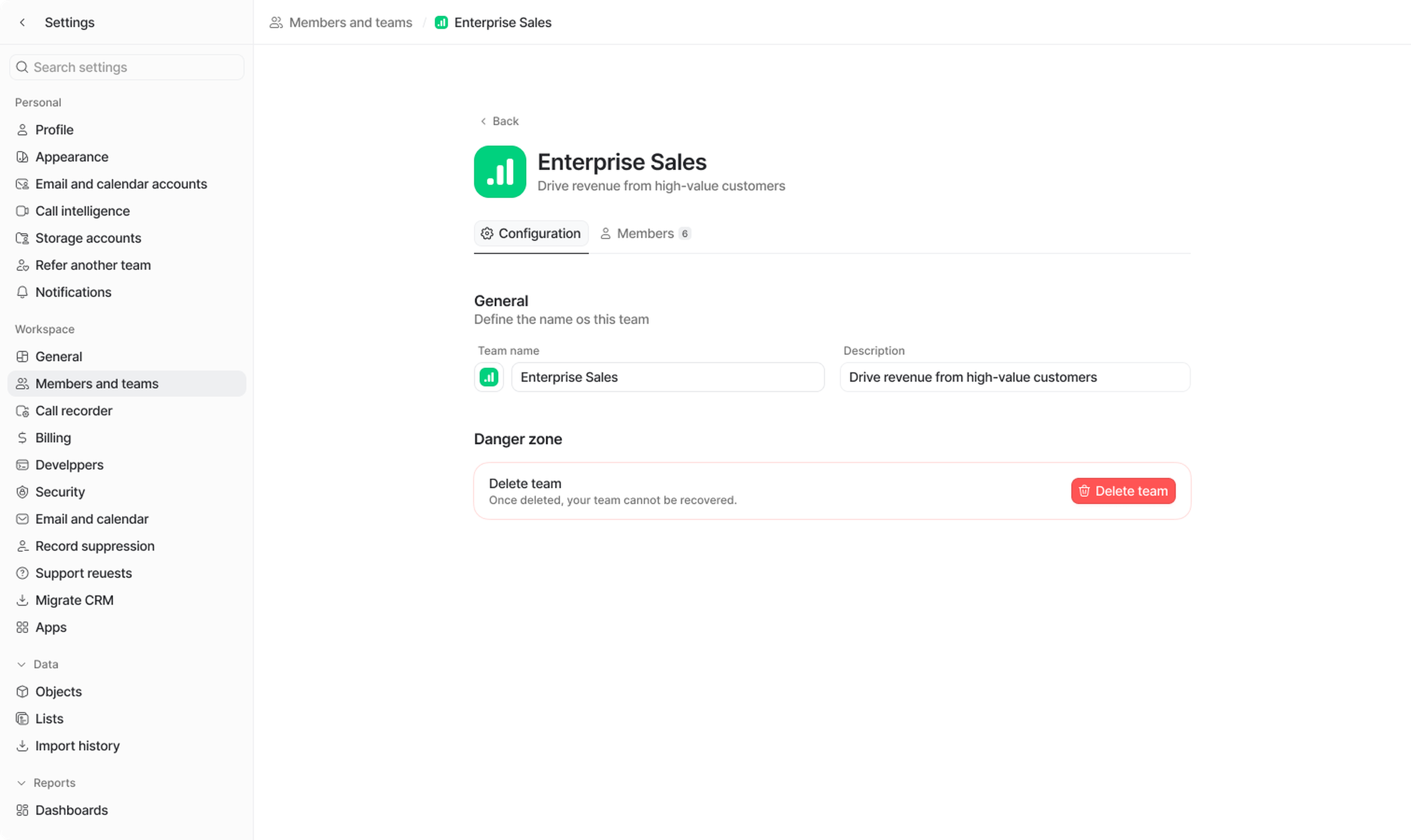 Note: Teams are available on Attio’s Pro plan with a limit of 10 teams, and Attio’s Enterprise plan with no limit. Learn more about plans and pricing.