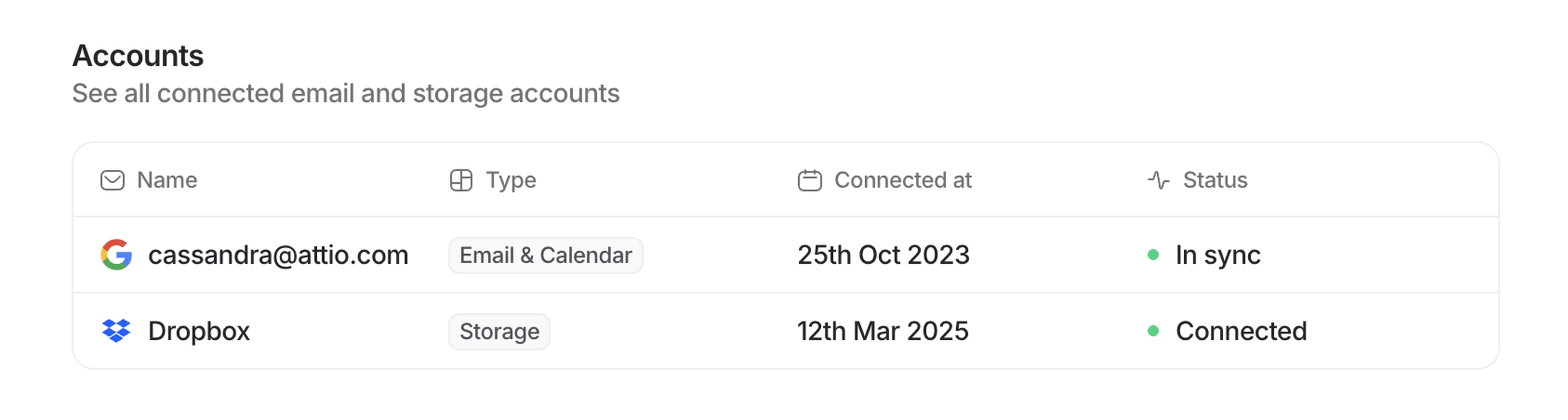 On the Enterprise plan, admins can also see connected email and storage accounts for each member by following these steps: