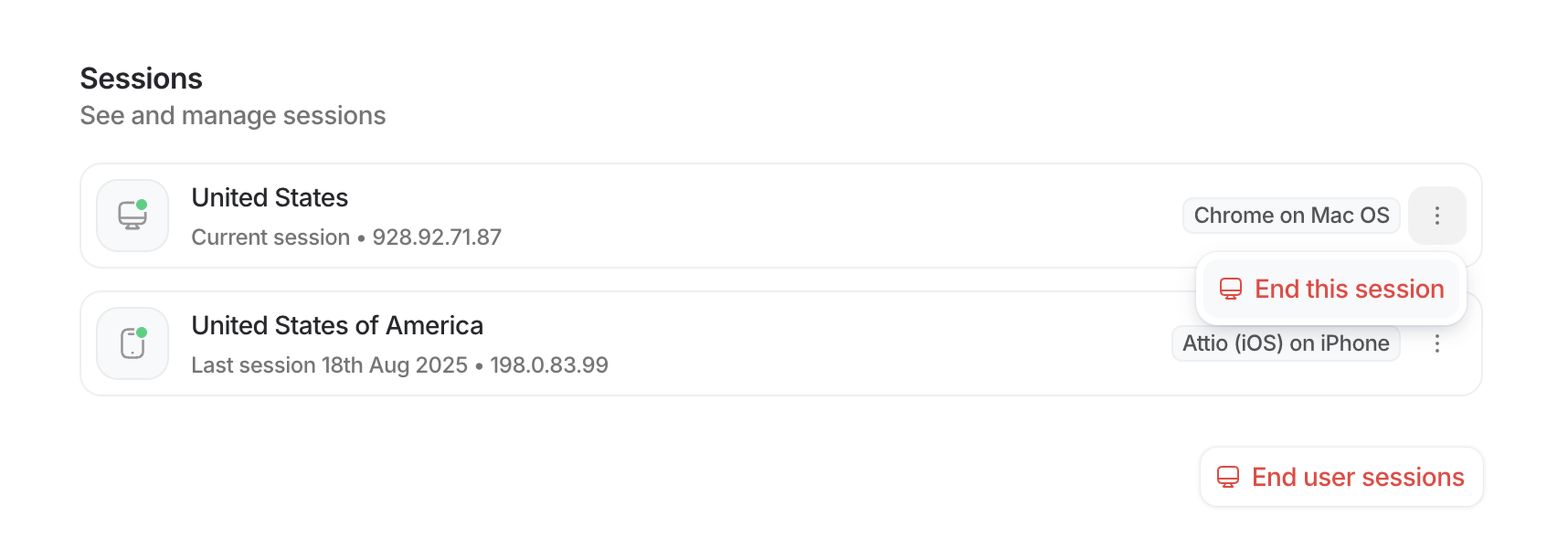To end all sessions, click the ⋮ icon next to their name and select End workspace sessions.