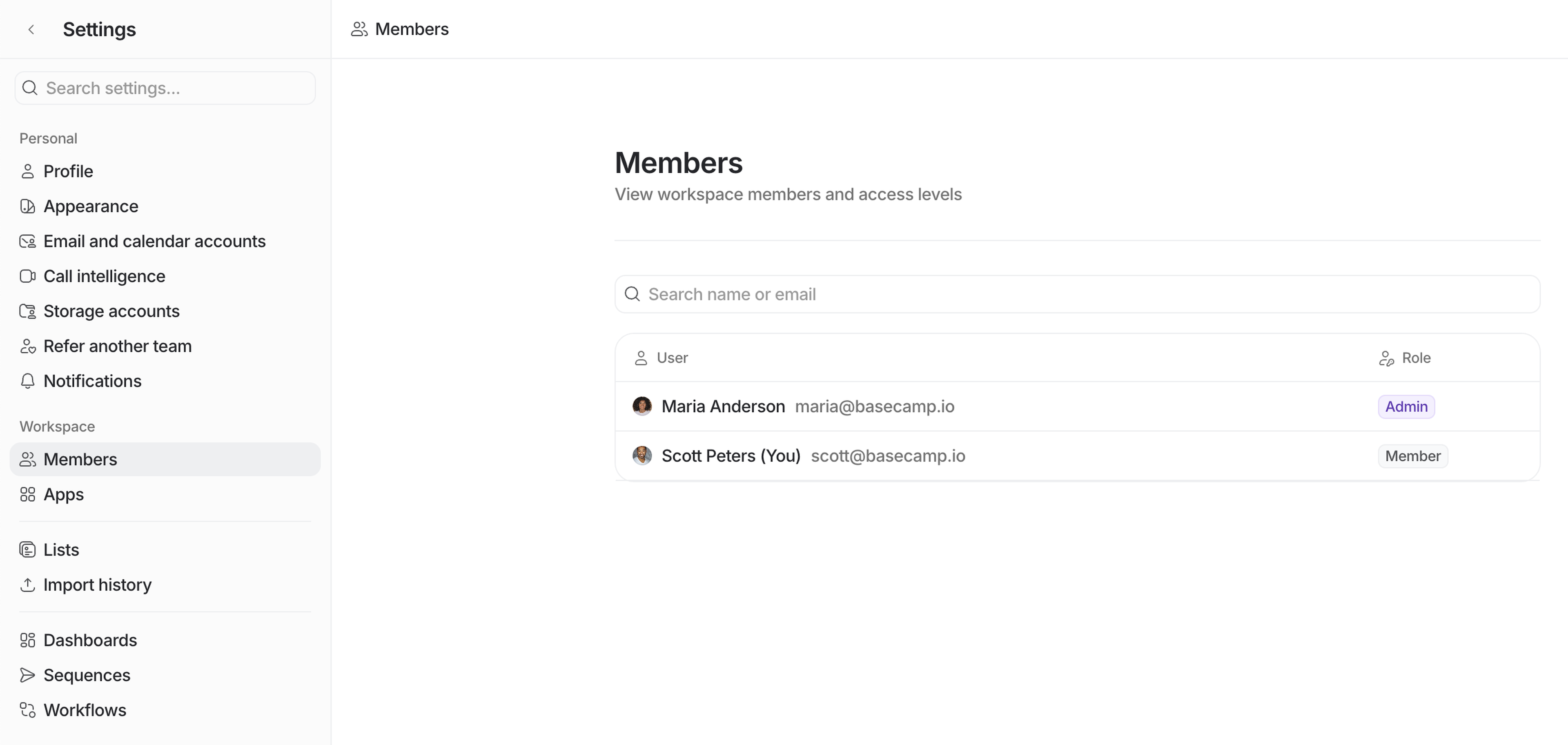 Member: Members cannot access Workspace settings, manage member access, or send invitations. Their ability to view and manage lists is dependent on list access settings.