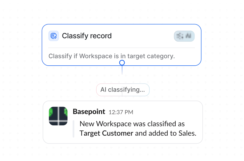 Build AI workflows that classify, enrich and summarize records in seconds.