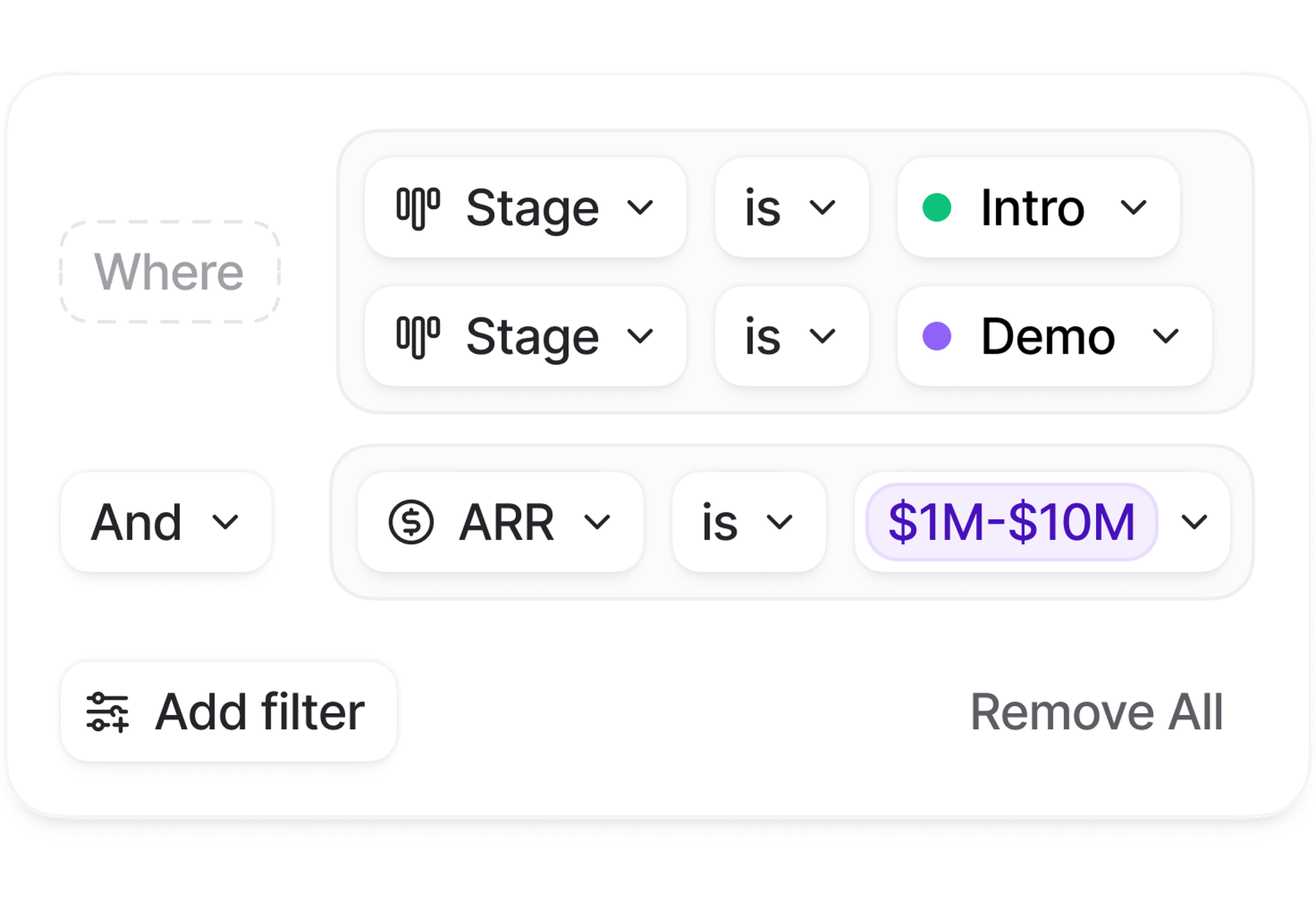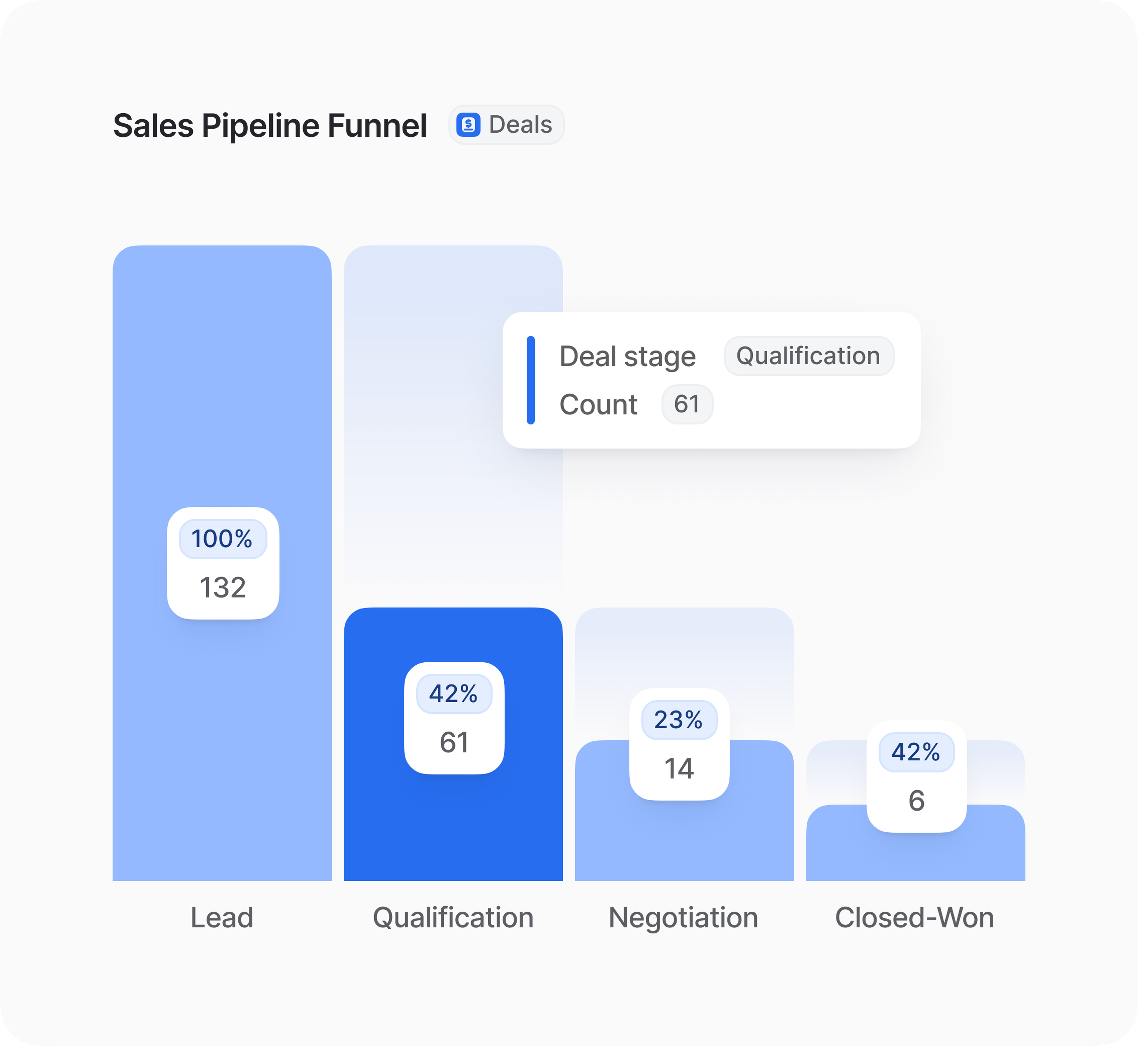 Quickly create reports to get deeper insights into your data with Attio’s powerful reporting suite.