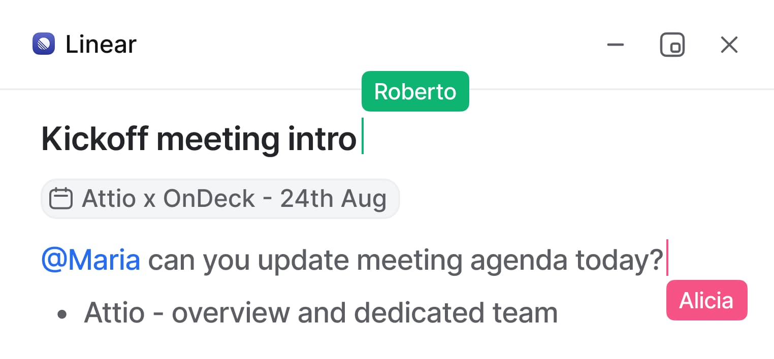 Attio’s next-level notes allow you and your teammates to collaborate in real-time.