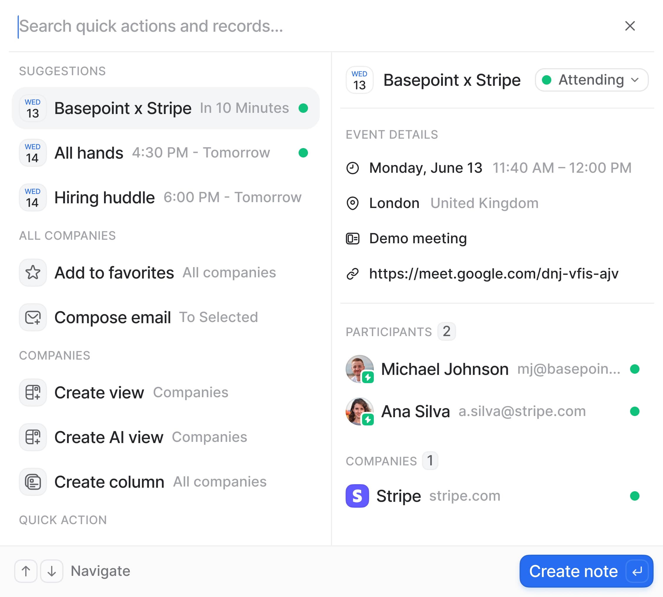 Search through records, notes, and tasks and take actions at the speed of lightning with Attio’s command palette.