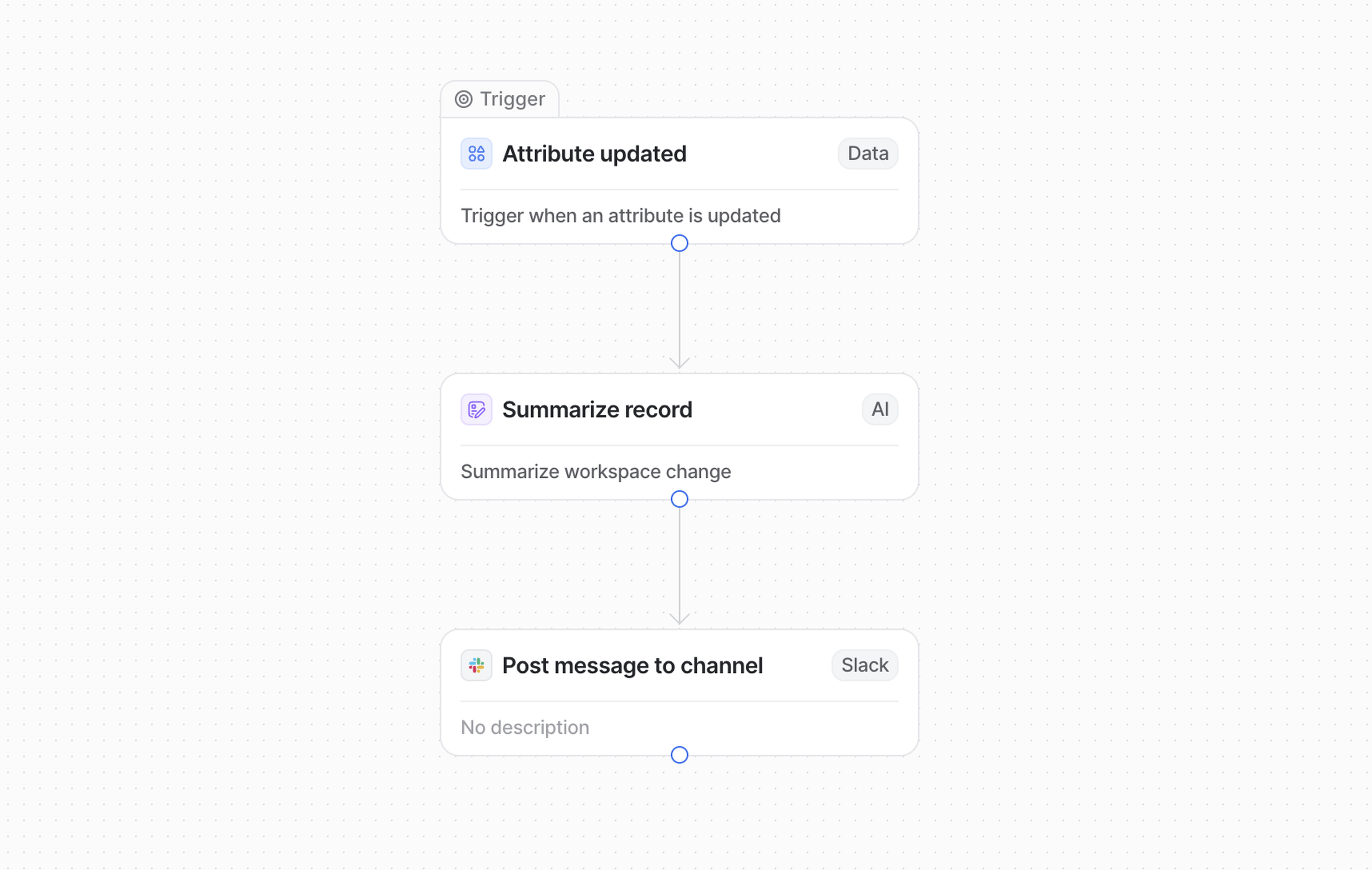 The Summarize Record block is where AI comes in. Like using ChatGPT, you simply put a prompt to generate your response. Since we are focusing on summarizing subscription changes, we would tell AI what attributes to outline. As an example: