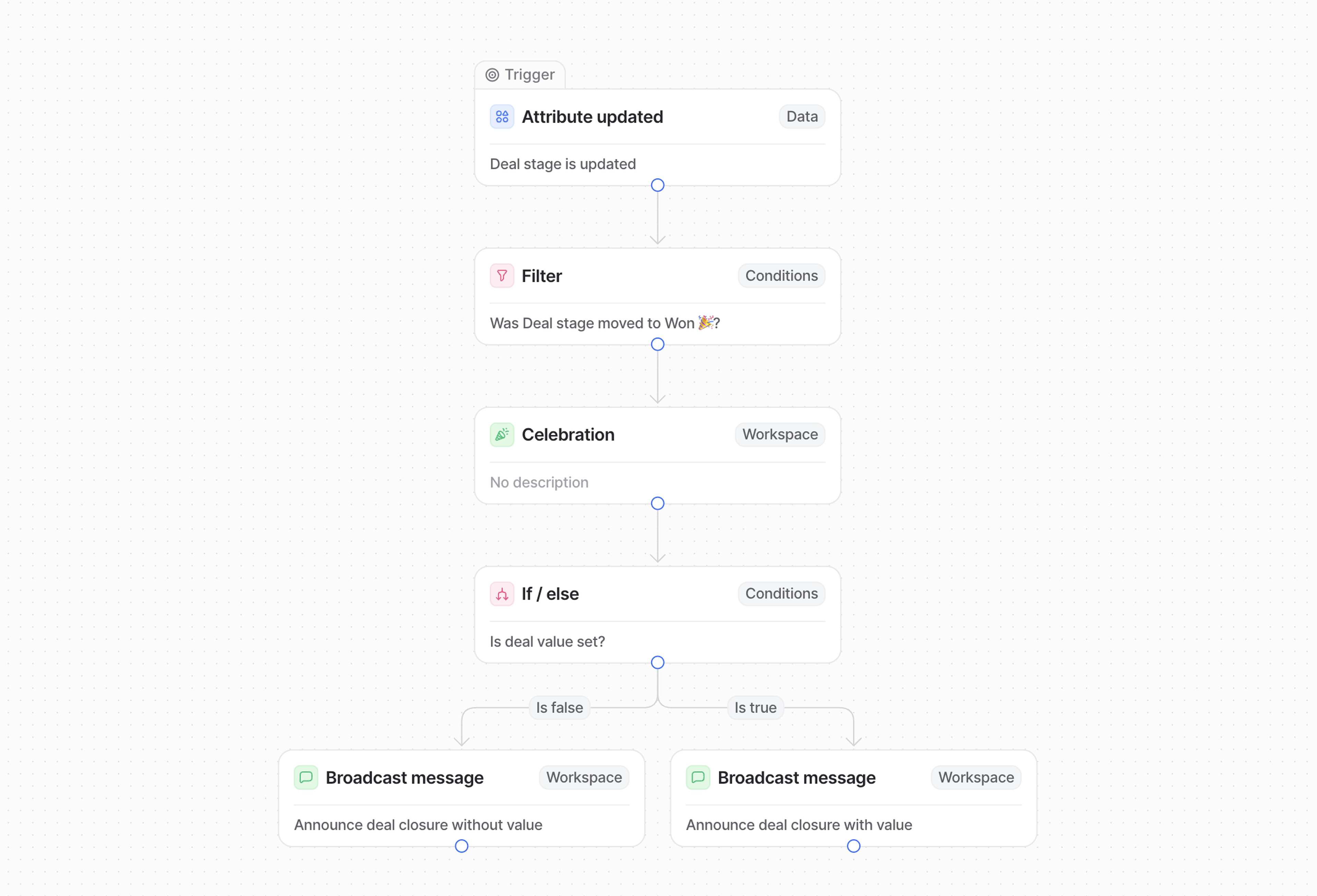 , so only the qualified deals will trigger the next block. However, you can add more filters if you need to.The Celebration block releases confetti across your workspace.