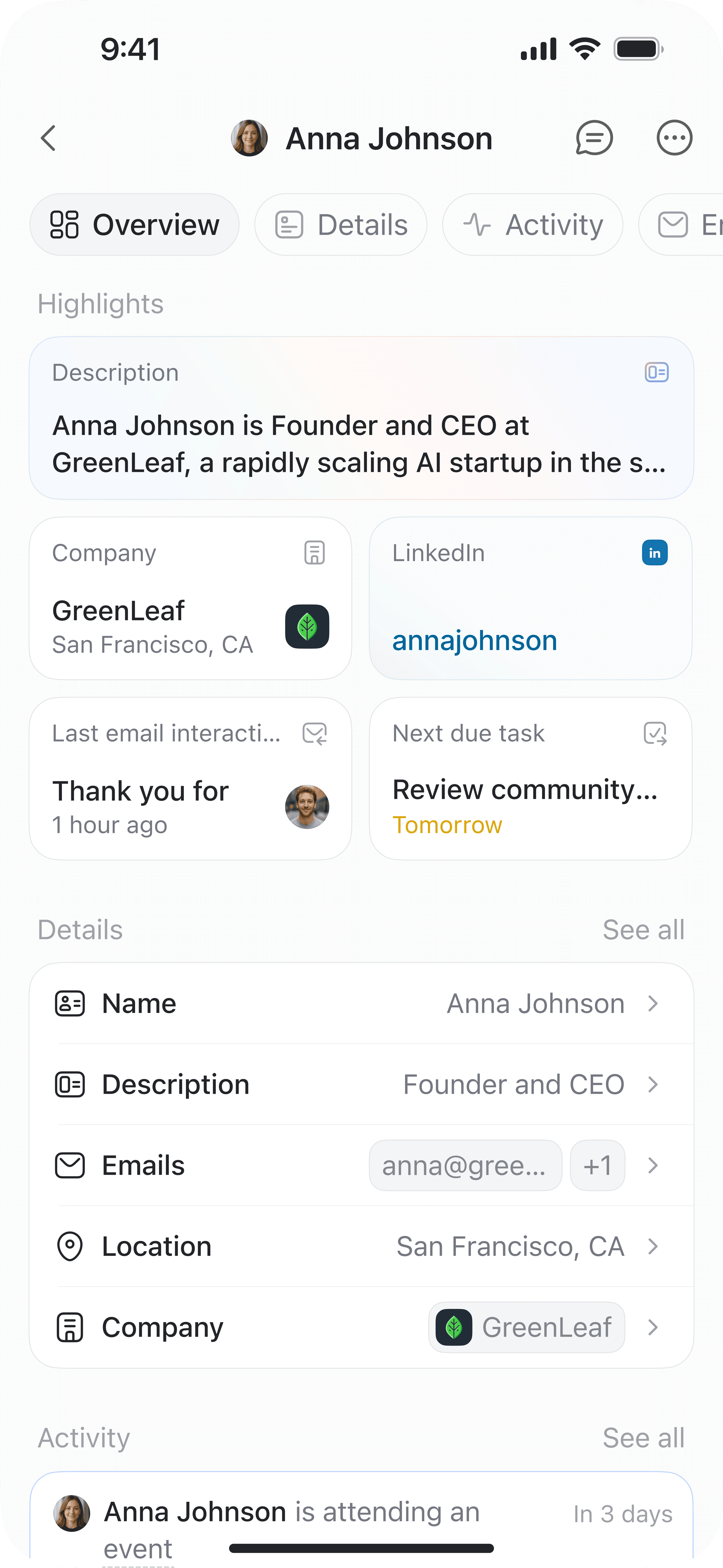 Attio’s real-time data sync means you’ll always have the info you need, whenever you need it.